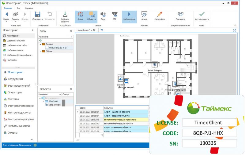 Клиентское рабочее место обеспечивает возможность программирования, администрирования и мониторинга системы. Пользователю предоставляется функционал для работы с ПО Timex в соответствии с доступными полномочиями операторов.
