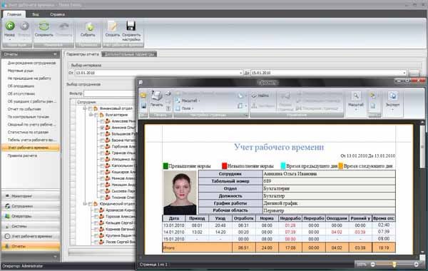 - учет и гибкая настройка праздничных и рабочих дней позволяет отражать в отчетах как общегосударственные, так и внутренние праздники компании