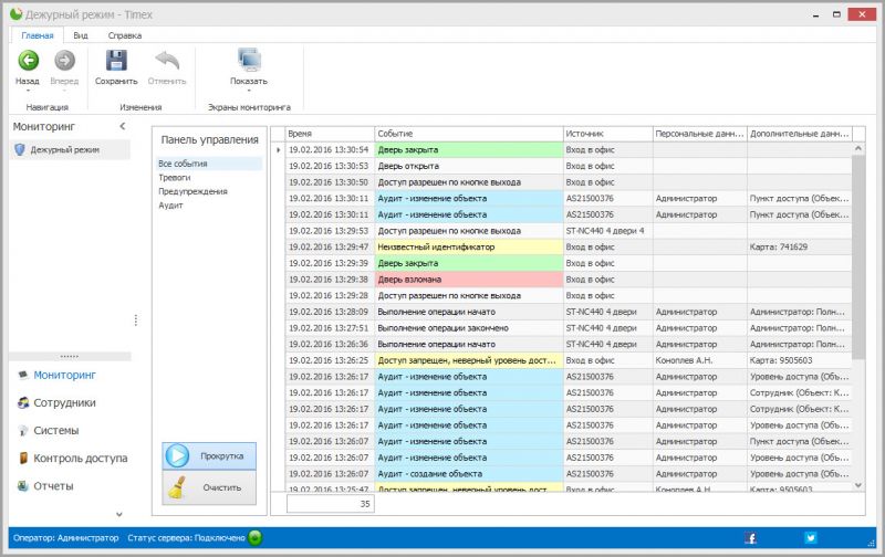 - Полный функционал системы контроля доступа